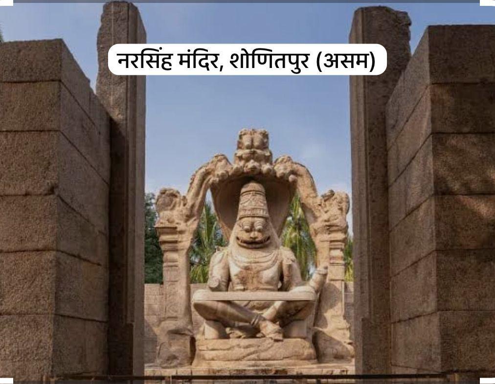 11. नरसिंह मंदिर, शोणितपुर (असम): असम के तेजपुर में स्थित यह मंदिर हिरण्यकशिपु की राजधानी शोणितपुर में होने का दावा करता है। यहाँ एक ऐसा पत्थर है जिस पर भगवान नरसिंह के पंजे के निशान हैं।